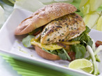 Seasoned chicken breast on bun $-.-- Add $-.-- for fries